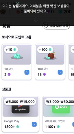 - 포인트 교환: 적립된 포인트는 앱 내 상점에서 원하는 상품권으로 교환할 수 있습니다.