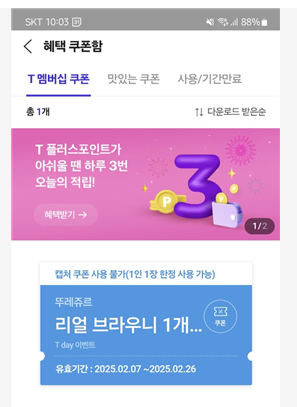 #t멤버십이벤트 #sk이벤트 #skt브라우니무료 #브라우니무료 #skt멤버십혜택 #뚜레쥬르이벤트