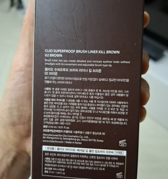 저는 인상이 다소 강한 편이라 검은색 아이라이너보다는 갈색을 선호합니다. 클리오 수퍼프루프 브러쉬 라이너의 킬브라운 컬러는 눈매를 또렷하게 만들어주면서도 부드럽고 고급스러운 이미지를 연출할 수 있어 매우 만족스럽습니다. 특히 데일리 메이크업이나 자연스러운 룩을 연출할 때 갈색 아이라이너는 탁월한 선택이라고 생각합니다.