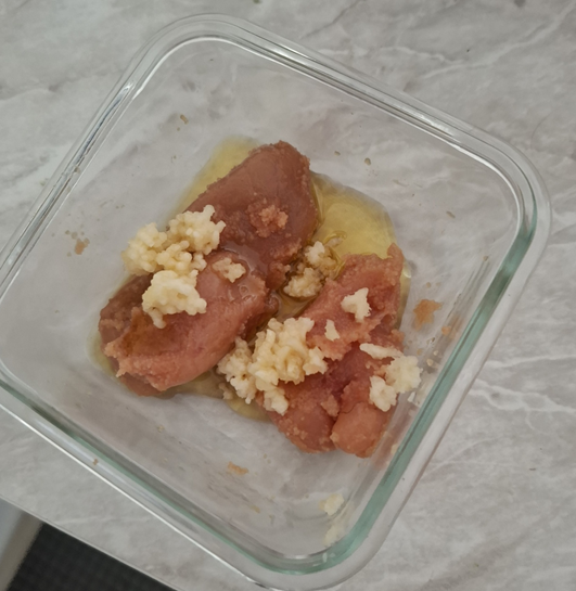 명란젓은 그냥 먹어도 짭조름한 감칠맛이 일품이지만, 여기에 들기름과 다진 마늘을 더하면 더욱 고소하고 깊은 풍미가 살아나요.