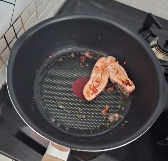 2️⃣ 팬에 들기름을 두르고 약불에서 명란젓을 앞뒤로 노릇하게 구워요.