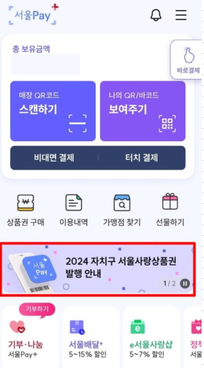 - 광역서울사랑상품권 선택