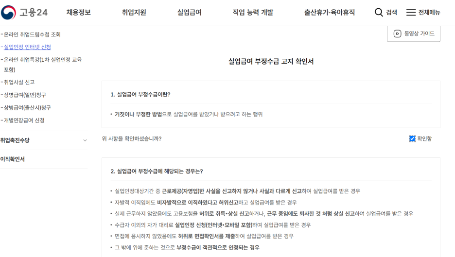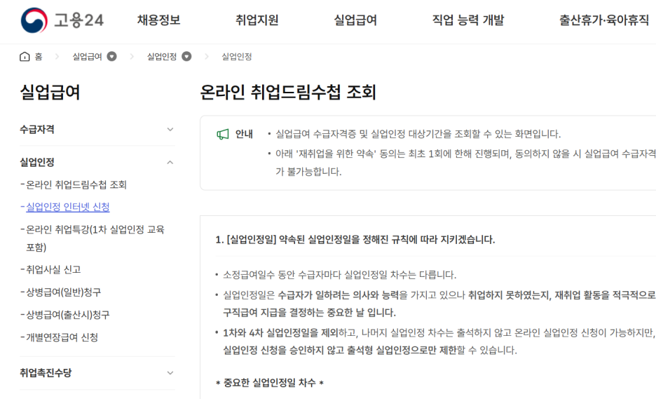 ✔ 고용24에서 간편하게 실업인정 신청 가능