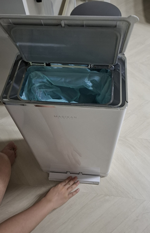 일반 휴지통과는 달리 뚜껑을 열어도 냄새가 확 올라오지 않아 여름철에도 무취 유지가 가능해요. 집 안에서 악취로 스트레스 받지 않아도 된다는 게 이렇게 행복할 줄 몰랐어요.