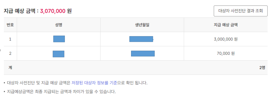 그 후 차례대로 넘어가다보면 수령가능한 육아특례지원금