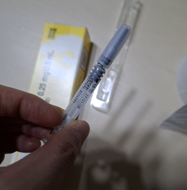 주사액에 공기방울이 남아 있으면 주사할 때 이물감이 생기고, 주사 부위가 불편해질 수 있습니다. 주사기를 세워 공기를 빼내고, 바늘 끝에 약물이 살짝 맺히는 것을 확인한 후 사용하면 깔끔하고 안전하게 주사를 맞을 수 있습니다.