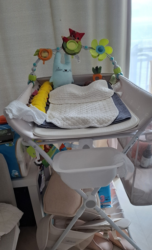 기저귀갈이대 아래나 옆쪽에 수납공간이 있어 자주 쓰는 육아용품을 한 번에 정리할 수 있는 점도 만족 포인트예요. “어디 뒀더라?” 하며 찾을 필요 없이 기저귀 갈이 루틴이 자연스럽게 정리돼서 육아 동선이 훨씬 편해졌어요.